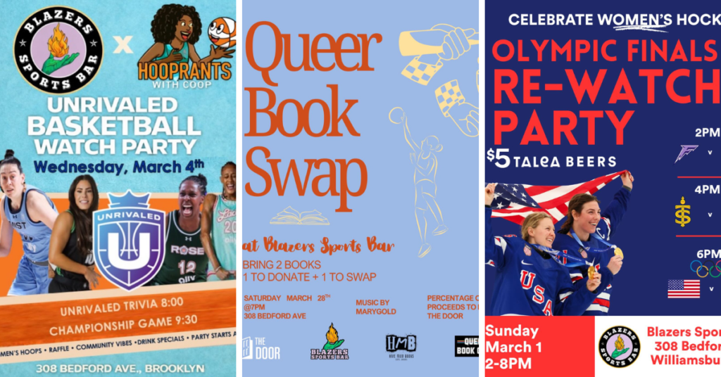 Blazers hosts watch parties, trivia nights, bingo, small business workshops, and sapphic zingles speed dating. They’re also organizing a queer book swap with donated books benefiting Hive Mind Books, reinforcing their commitment to supporting other women-owned and queer-centered spaces.