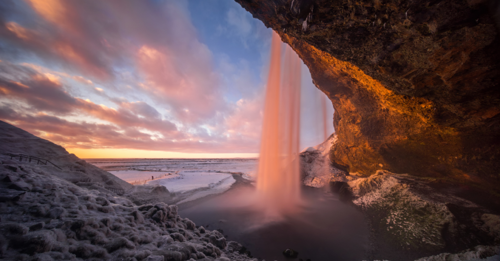 Heading east, stop at Seljalandsfoss and Skógafoss, two iconic waterfalls where you can literally walk behind the cascading water. Continue toward Vík, home to Iceland’s famous black-sand beach, Reynisfjara, and towering basalt columns. Farther along, Jökulsárlón Glacier Lagoon will leave you speechless as icebergs drift slowly out to sea.