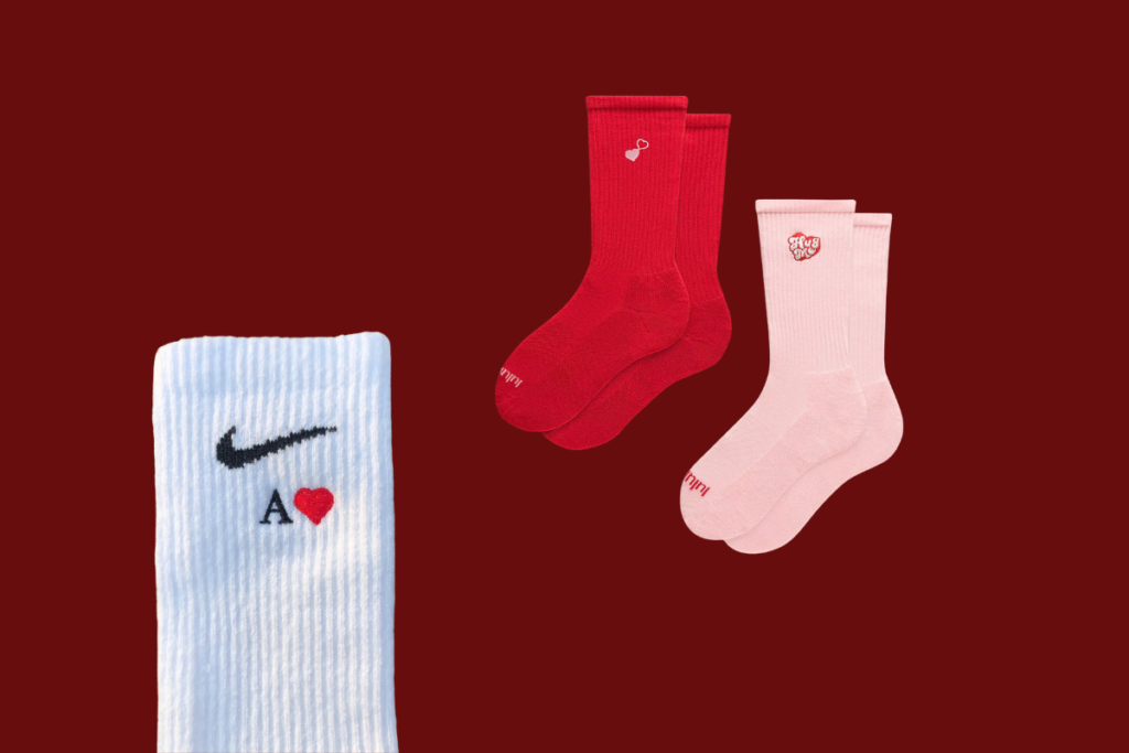 Custom Nike socks are always a win. They’re practical, cozy, and still feel special with initials or embroidery. A gift that will actually get worn. These pairs form Lululemon also has a couple of adorable pairs in red and pink.