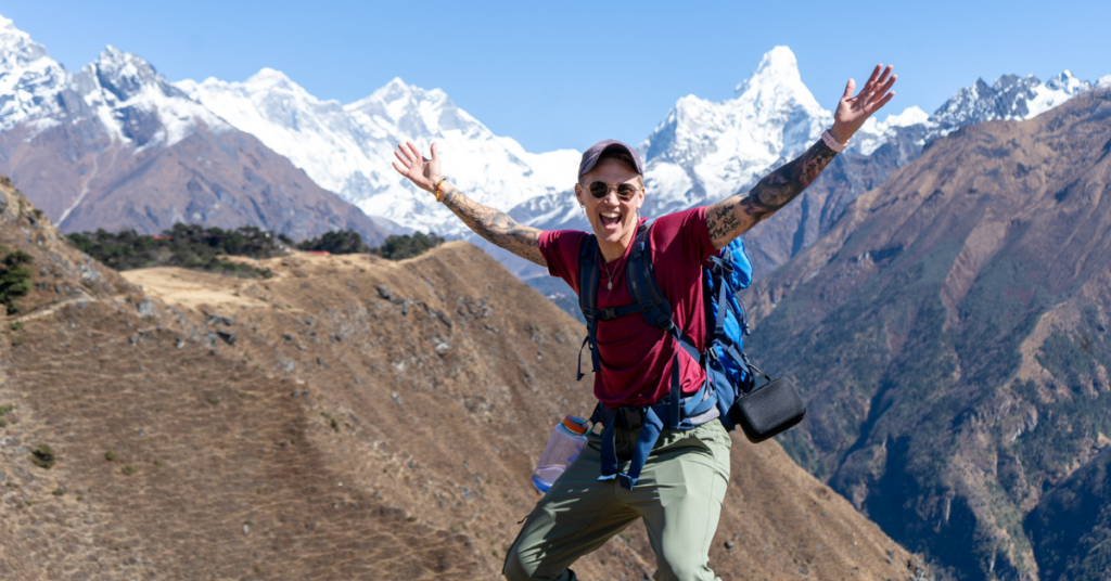 At our final dinner back in Kathmandu, exhausted, coughing, sunburned, fighting off chapped lips and a weird rash, every conversation circled back to the same thing: gratitude. Grateful that these were the people we did this with. Grateful for every shared sunscreen moment, every “you’ve got this” on a steep hill, every hug, every laugh, and every time someone cried from altitude, exhaustion, joy, or all of the above.
